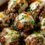 This dish is a perfect marriage of hearty ground beef meatballs, savory French onion broth, and a cheesy topping that will have everyone at the table coming back for seconds. It’s an ideal recipe for weeknight dinners, game-day gatherings, or when you simply need a warm, comforting meal with minimal effort. Whether you’re feeding a hungry family or preparing food for a cozy night in, these slow-cooked meatballs deliver flavor and satisfaction in every bite.