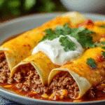 Whether you’re making them for a weeknight dinner, a casual get-together, or a make-ahead freezer meal, this recipe will never let you down. The warm tortillas, hearty beef filling, savory spices, and gooey cheese come together in every bite — topped with a cool spoonful of sour cream for good measure.