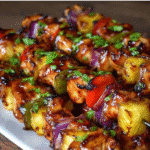 Hawaiian Chicken Kebabs are a perfect blend of sweet, savory, and smoky flavors that bring tropical vibes to any meal. The combination of marinated chicken, colorful vegetables, and juicy pineapple creates a dish thatโs visually appealing, packed with flavor, and quick to prepare. Whether grilling outdoors, baking in the oven, or serving for a casual dinner at home, these kebabs are sure to become a favorite. With simple ingredients, straightforward preparation, and tips for customization, you can enjoy a delicious, healthy, and satisfying tropical meal anytime.