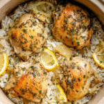 Few meals capture the perfect balance of freshness, comfort, and simplicity like Slow Cooker Lemon Herb Chicken and Rice. This dish combines tender, juicy chicken thighs with fragrant herbs, zesty lemon, and perfectly cooked rice, all made effortlessly in a slow cooker. Designed for busy weeknights or relaxing weekend dinners, itโs a one-pot meal that minimizes cleanup while maximizing flavor. The combination of lemon juice and zest with thyme, rosemary, and garlic creates a bright, aromatic profile that elevates this dish from ordinary to extraordinary. Ideal for families, meal prepping, or entertaining guests, this recipe demonstrates that slow-cooked meals can be light, refreshing, and packed with flavor, without the need for complicated steps or lengthy preparation. In this article, weโll provide a comprehensive guide, including ingredient details, step-by-step instructions, expert tips, serving suggestions, storage advice, variations, nutritional information, and frequently asked questions, ensuring that your Slow Cooker Lemon Herb Chicken and Rice turns out perfectly every time.